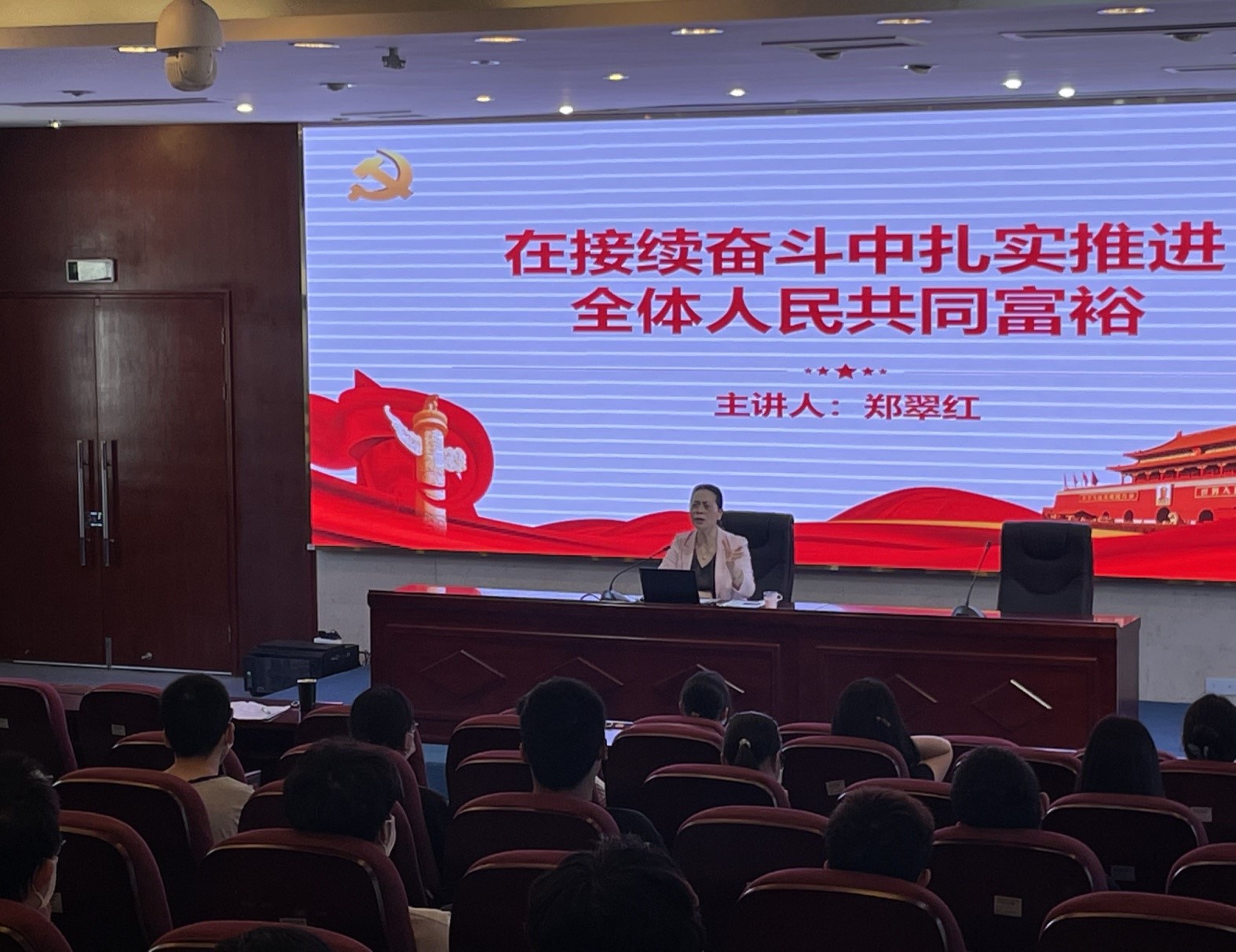 課上,鄭翠紅從“理解共同富裕的科學內涵”、“把握共同富裕的實踐途徑”、“認清共同富裕的未來”三大方面,結合學校“十三五”建設成果及“十四五”規(guī)劃藍圖,向師生詳細闡釋了習近平總書記關于共同富裕的系列重要論述, 進一步激勵青年學生深刻認識肩負的歷史重任,實踐共同富裕發(fā)展理念,積極投身學校的高質量發(fā)展。