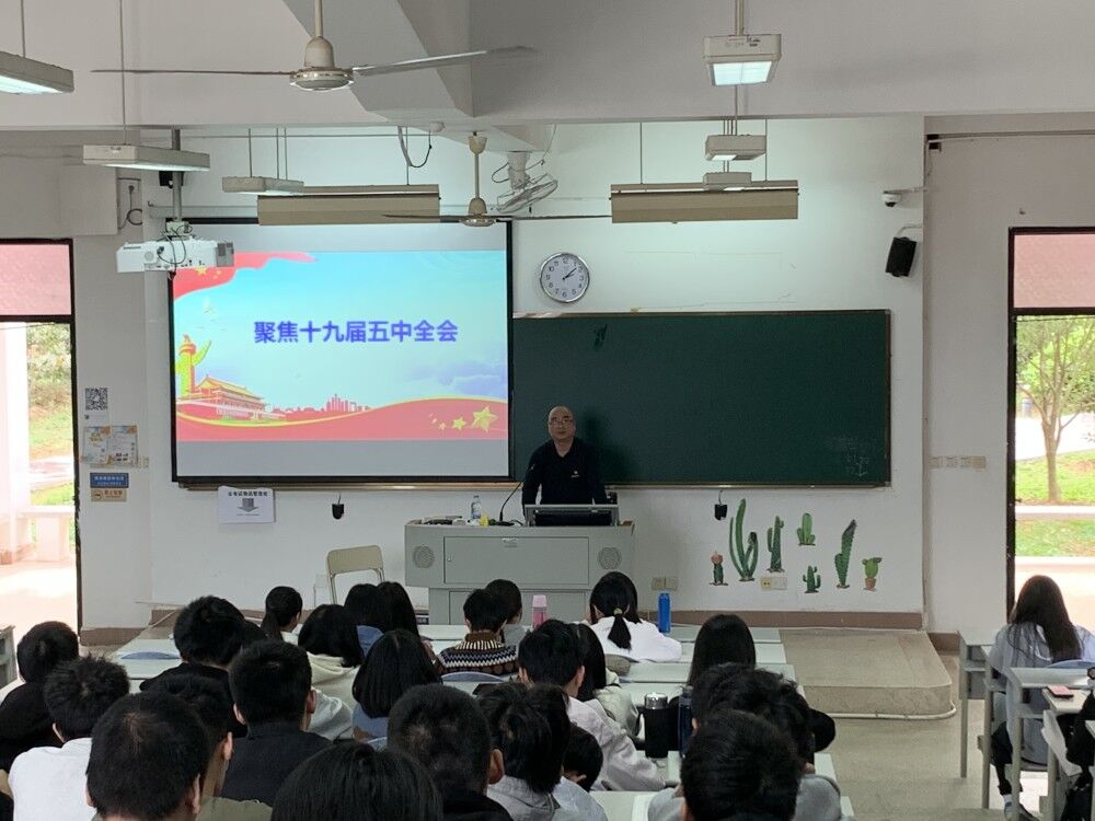 邱滾忠書記從十九屆五中全會(huì)背景介紹起,“十四五”時(shí)期是我國(guó)全面建成小康社會(huì)、實(shí)現(xiàn)第一個(gè)百年奮斗目標(biāo)之后,乘勢(shì)而上開啟全面建設(shè)社會(huì)主義現(xiàn)代化國(guó)家新征程、向第二個(gè)百年奮斗目標(biāo)進(jìn)軍的第一個(gè)五年。我國(guó)發(fā)展仍然處于重要戰(zhàn)略機(jī)遇期,但面臨的國(guó)內(nèi)外環(huán)境正在發(fā)生深刻復(fù)雜變化。邱書記還講解了“十三五”以來(lái)取得的成就以及我們面臨的機(jī)遇與挑戰(zhàn),同學(xué)們聽后紛紛表示將繼續(xù)認(rèn)真學(xué)習(xí)黨的十九屆五中全會(huì)精神,并積極投身新征程,展現(xiàn)新作為,為全面建設(shè)社會(huì)主義現(xiàn)代化國(guó)家貢獻(xiàn)自己的力量。