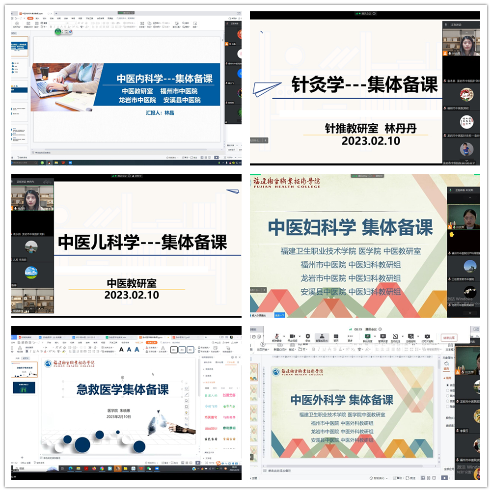 為進(jìn)一步深化校院合作,促進(jìn)醫(yī)教融合,落實(shí)協(xié)同育人,提升人才培養(yǎng)質(zhì)量,醫(yī)學(xué)院教師第三黨支部經(jīng)過數(shù)周的籌劃與準(zhǔn)備,2月10日晚,帶領(lǐng)中醫(yī)專業(yè)、針推專業(yè)教師,聯(lián)合福州市中醫(yī)院、龍巖市中醫(yī)院、安溪縣中醫(yī)院相關(guān)教研組通過線上直播的方式開展集體備課。內(nèi)容涵蓋了2021級中醫(yī)專業(yè)、針推專業(yè)學(xué)生即將在各醫(yī)院學(xué)習(xí)的中醫(yī)內(nèi)科學(xué)、針灸學(xué)、中醫(yī)婦科學(xué)等臨床課程。