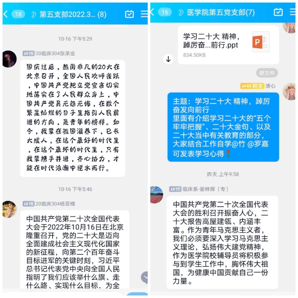 為進(jìn)一步學(xué)習(xí)貫徹黨的二十大精神,第五黨支部于10月24日上午開展了題為《學(xué)習(xí)黨的二十大,踔厲奮發(fā)向前行》的線上黨日活動(dòng),系統(tǒng)學(xué)習(xí)習(xí)近平總書記重要講話精神,并對(duì)報(bào)告中關(guān)于教育、科技、人才工作的部署內(nèi)容進(jìn)行討論,充分認(rèn)識(shí)做到“五個(gè)牢牢把握”的深刻內(nèi)涵與重要意義,把黨的二十大精神學(xué)到深處,落到實(shí)處。