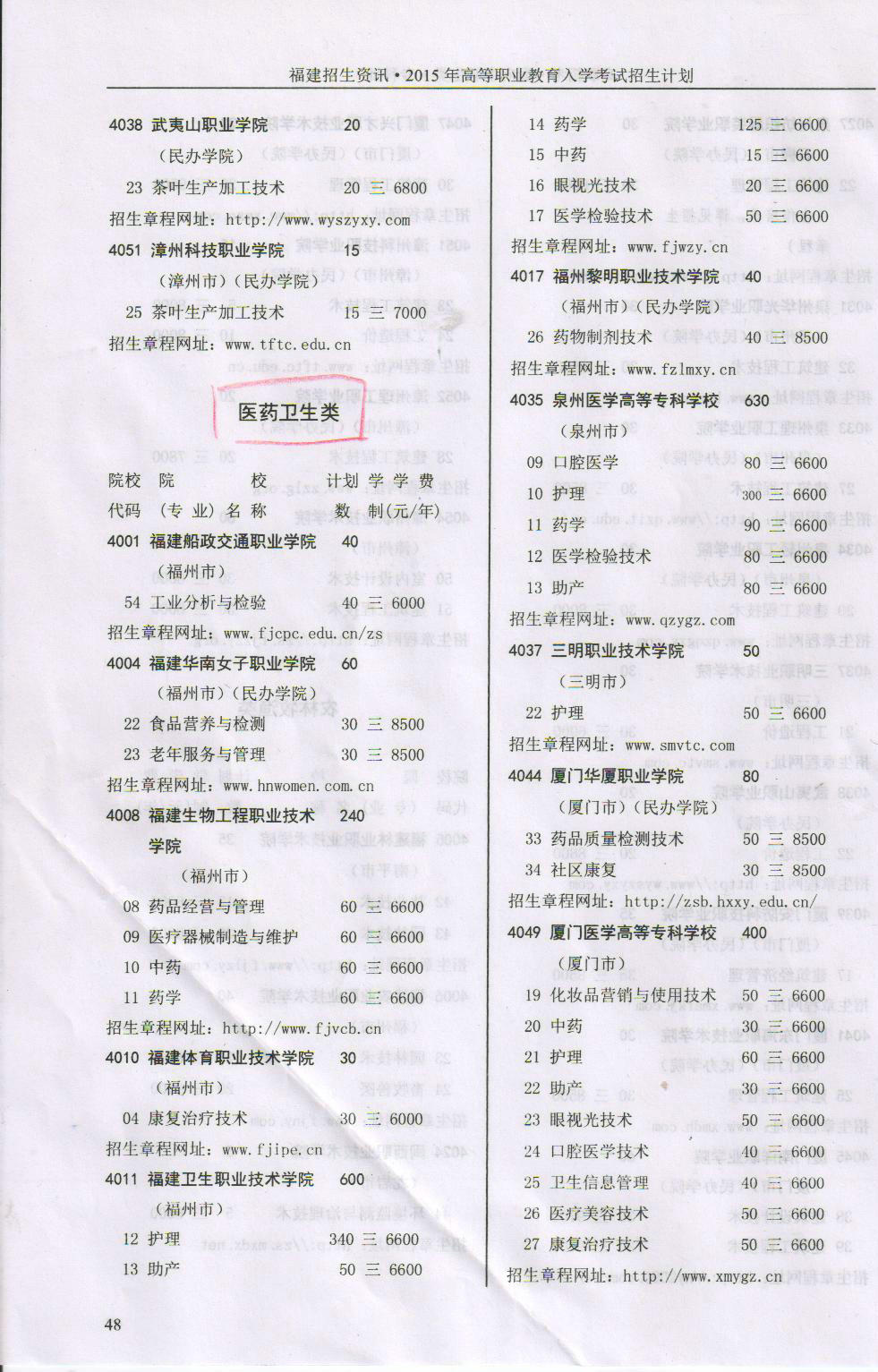 福建衛(wèi)生職業(yè)技術學院2016年高職招考招生計劃